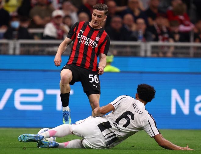 下半场易边再战,AC米兰率先进行换人调整,埃斯图皮尼安替补上场,换下巴尔泰萨吉。第50分钟,萨勒马克尔斯在禁区右侧被彻底放空,他接到莱奥的传球,直接起脚射门。结果皮球击中了横梁,太可惜了。9分钟后,坎比亚索在禁区左侧小角度劲射,踢高了。第62分钟,AC米兰继续换人,菲尔克鲁格替补上场,换下普利希奇。